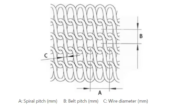 | Item No | Tooling pitch | Wire diameter | Spiral pitch | Belt pitch | Belt thickness | Weight |